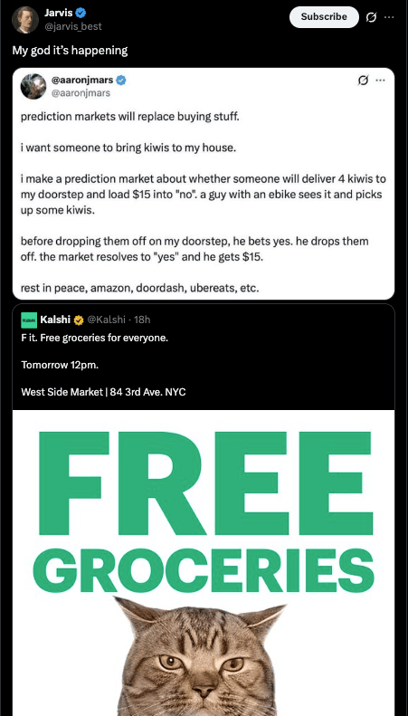 Have anything fresh and hot off of the prediction market desk you want to share? Hit me up on X or Instagram (@readanomaly).
